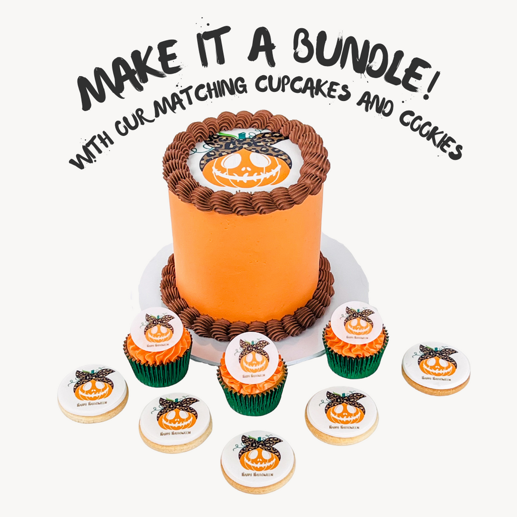 Why not pair this cake with a box of our Halloween Pumpkin Cookies or Cupcakes?